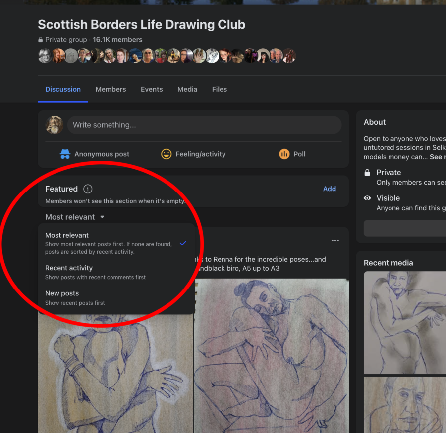 2: They have also added a sneaky little button which you don't see unless you look. At the top of the posts is a 'Most Relevant' button. Click on that and change it to New Posts to see everything. Unfortunately you have to do that each time you check the page.