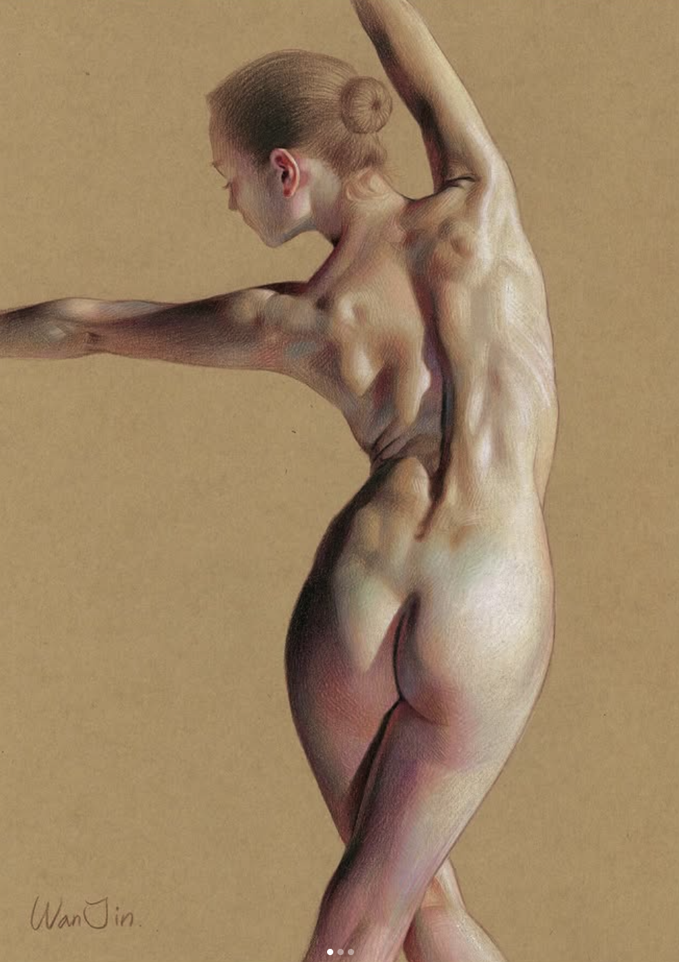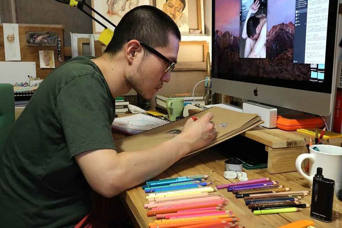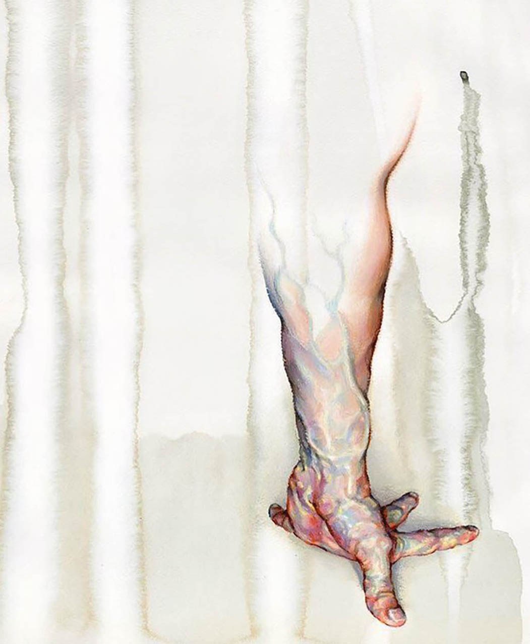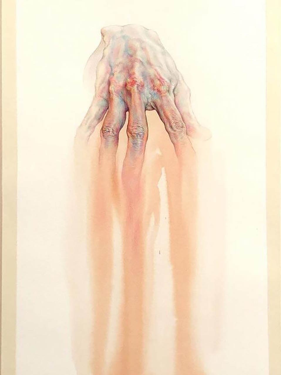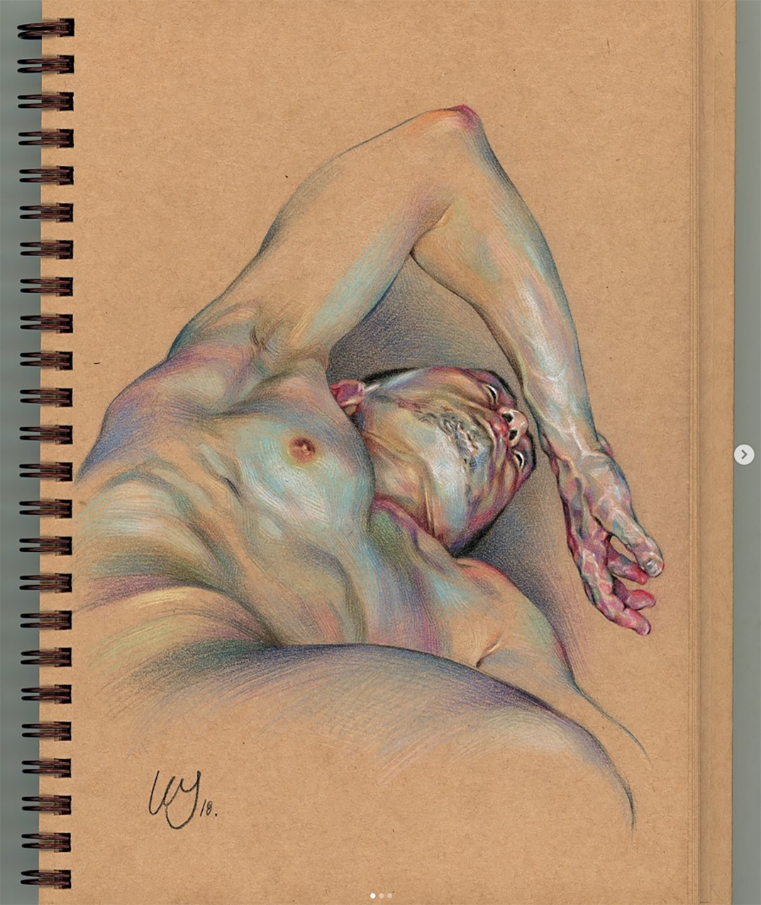 Fascinated by the paintings of Lucian Freud, Wanjin incredible creates sensual hyperrealistic paintings and drawings of the human anatomy, particularly hands and feet. He usually paints nudes that allow him to express the abstract curves of the human body and the infinite tones of the surface of the skin so you can almost feel its texture. His artworks carry a delicate realism full of details in which you can even distinguish veins, hairs and muscles. Working with coloured pencils acrylic paint and inks he creates complex hatched layers of colour, and adding paint or ink to soften the image giving it an ethereal look.