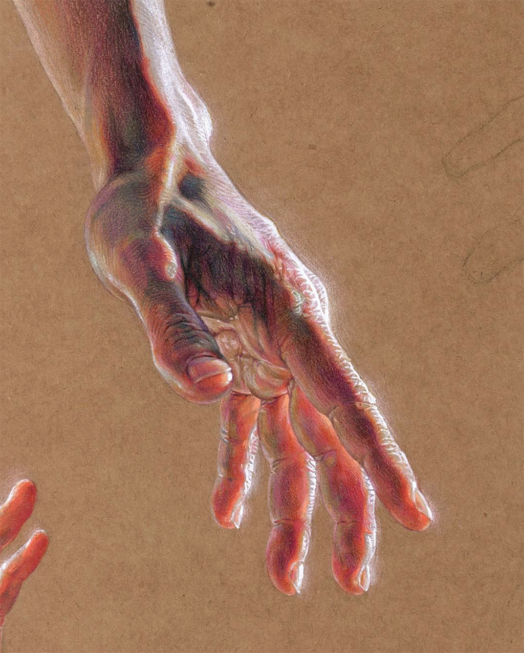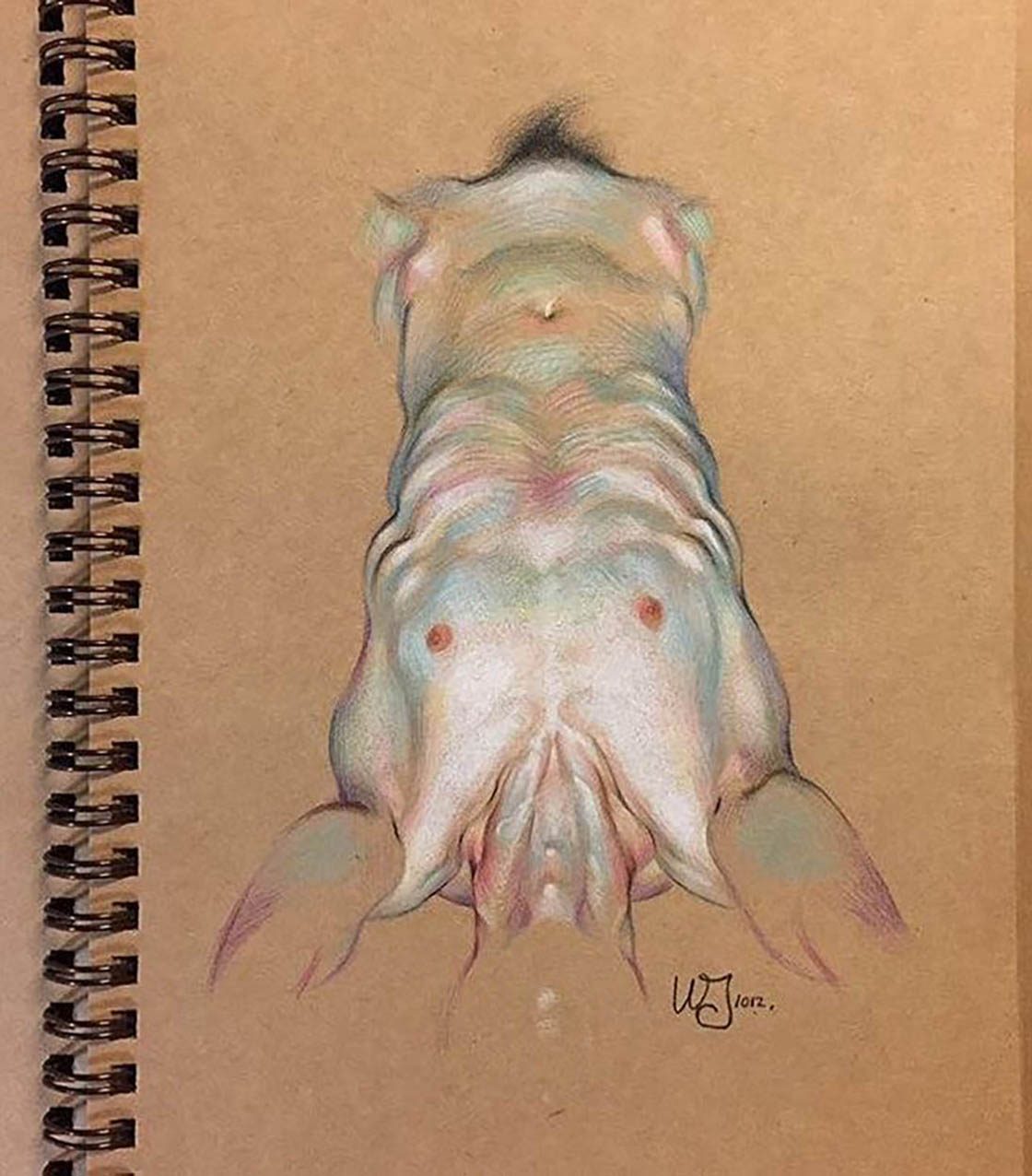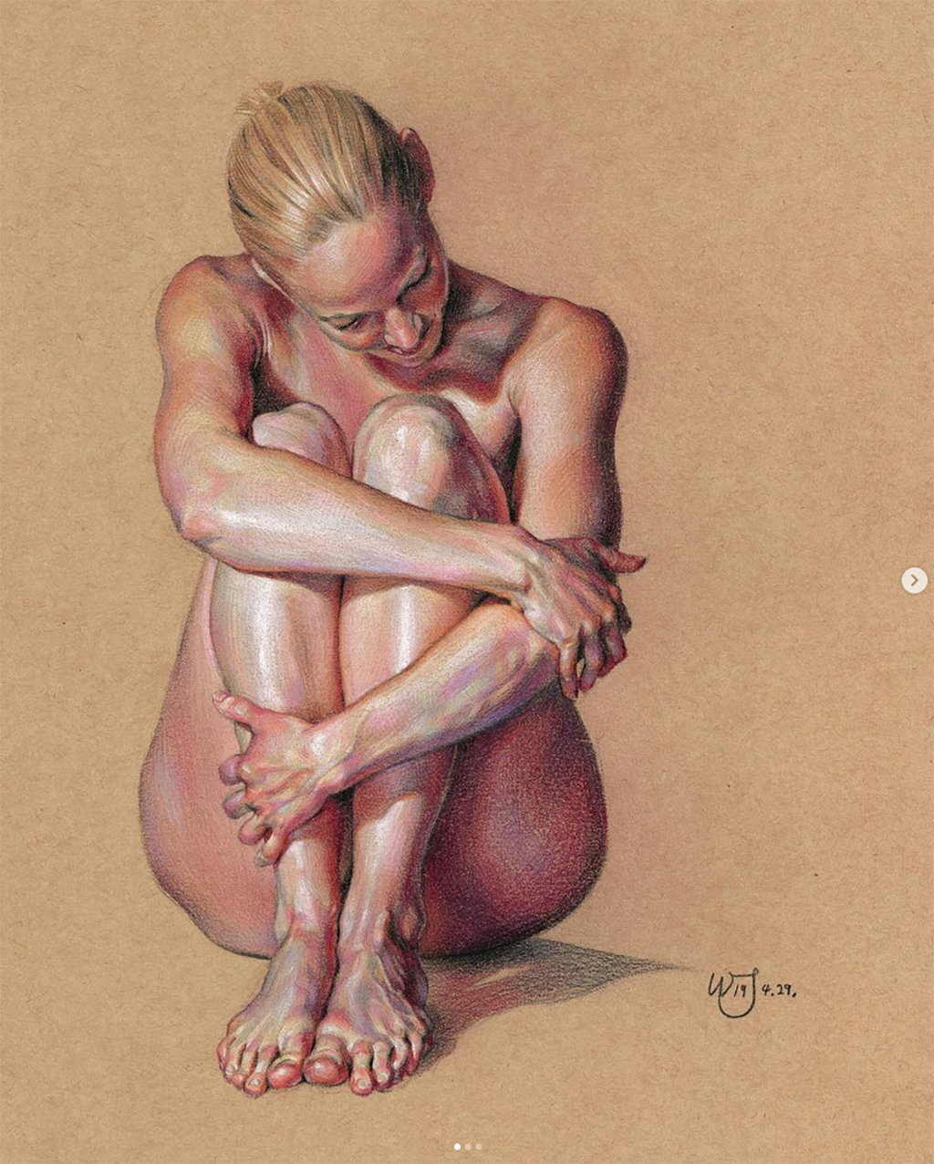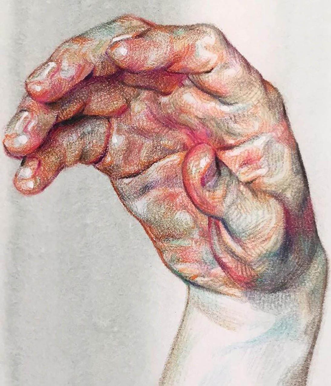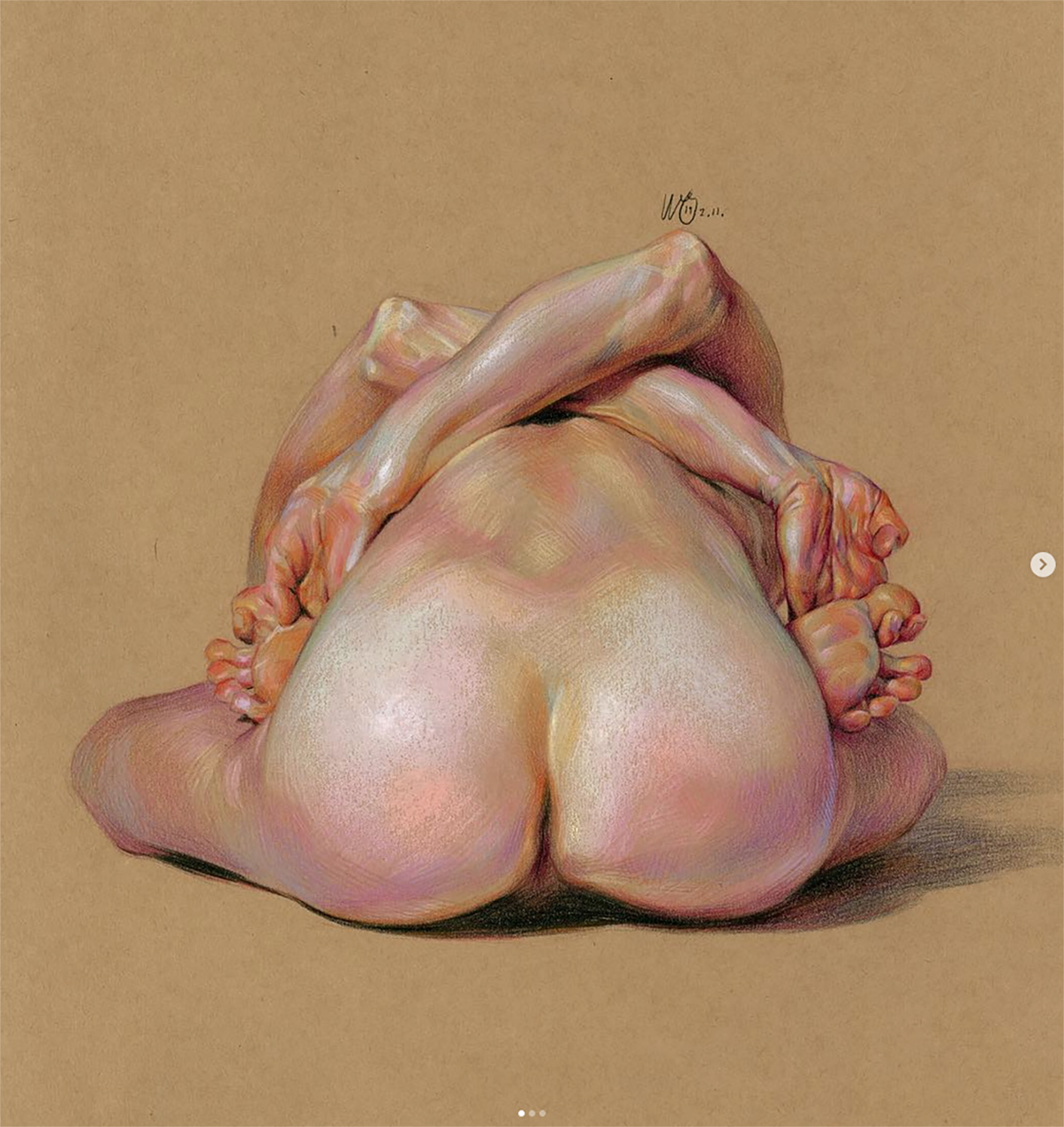 Fascinated by the paintings of Lucian Freud, Wanjin incredible creates sensual hyperrealistic paintings and drawings of the human anatomy, particularly hands and feet. He usually paints nudes that allow him to express the abstract curves of the human body and the infinite tones of the surface of the skin so you can almost feel its texture. His artworks carry a delicate realism full of details in which you can even distinguish veins, hairs and muscles. Working with coloured pencils acrylic paint and inks he creates complex hatched layers of colour, and adding paint or ink to soften the image giving it an ethereal look.